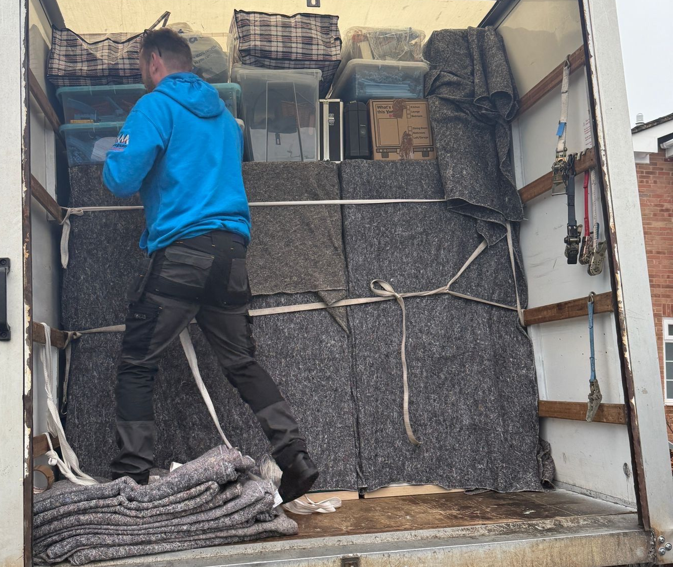 The protective blankets we use are made from 100% recyclable waste product. We give them another purpose in protecting our clients belongings without environmental impact.